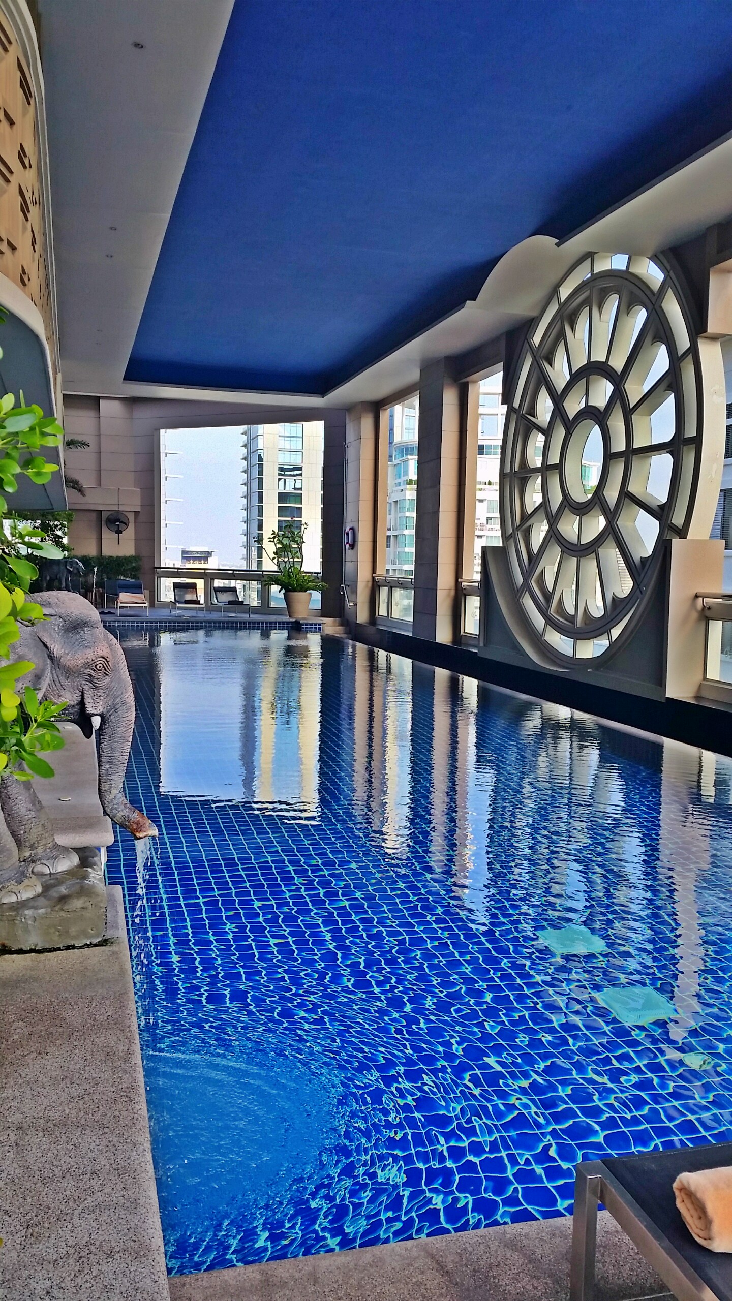 We settled into our hotel, Marriott Executive Apartments, in the heart of Bangkok, Thailand and hardly wanted to leave! The hotel was comfy, cozy and nice. We couldn’t get enough of their covered rooftop pool, which had an amazing view of the Bangkok skyline, and their yummy breakfast buffet loaded with fresh fruits, fresh juices and traditional Thai cuisine.